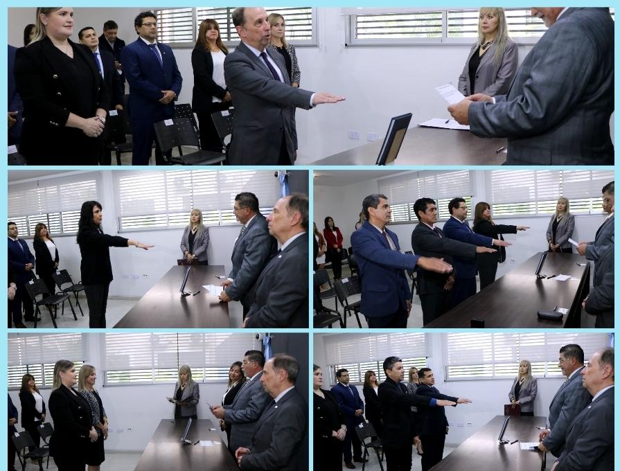 Finalmente fue el turno de los secretarios y secretaria: del Juzgado de Instrucción y Correccional, Mirtha Graciela Varela; del Juzgado en lo Civil, Comercial, del Trabajo y de Menores, José Alberto Madrid; y del Juzgado de Paz de Ingeniero Juárez, Juan Gabriel Santillán.