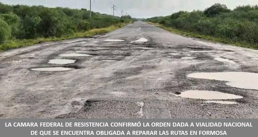 La Cámara Federal de Resistencia, en un extenso fallo, rechazo el Recurso de Apelación interpuesto por el Gobierno Nacional - Dirección Nacional de Vialidad (DNV), contra la Medida Cautelar dictada por el Juzgado Federal Nº 1 de Formosa, a cargo del Dr. Pablo Morán, la cual ordenó a la DNV, ejecutar en el plazo de noventa (90) días, las obras necesarias para reparar/rellenar los pozos, protuberancias y sellado de grietas existentes y que por su estado sean considerados peligrosos para el normal tránsito vial mediante tareas de bacheo y su posterior mantenimiento, como así la limpieza de banquinas de los puntos indicados en las Rutas Nacionales Nº 11, 81, 86 y 95. La demanda, fue presentada por la Fundación Unidos por el Dolor, presidida por Alberto Daniel Gauna, la “Asociación Argentina de Transportadores de Hacienda” (A.A.T.H.A.), dirigida por Mario A. Emmert y el “Sindicato de Choferes de Camiones y Obreros del Transporte Automotor de Cargas” encabezada por su Secretario General, Sergio C. Recalde, con el patrocinio de la Defensoría del Pueblo de la Provincia, a cargo de José Leonardo Gialluca.